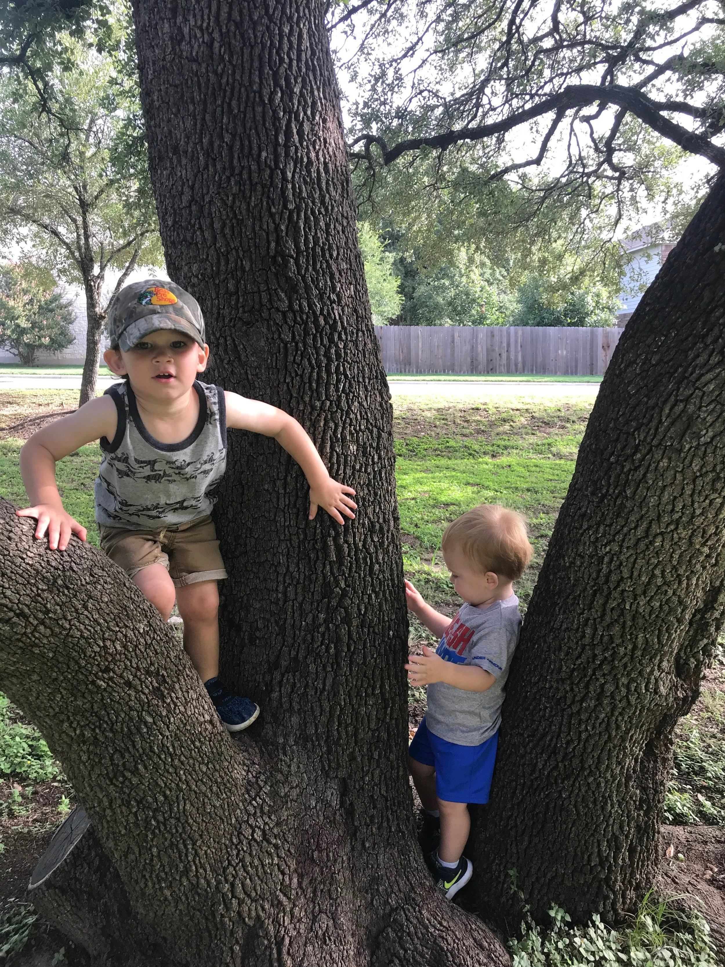 Around here, we are always on the lookout for good climbing trees. My boys will often run right past the playground equipment to get to the trees—and we encourage it! Why? Because every branch offers a chance for brain building. We can see their bodies working and their brains growing as they climb higher and higher.